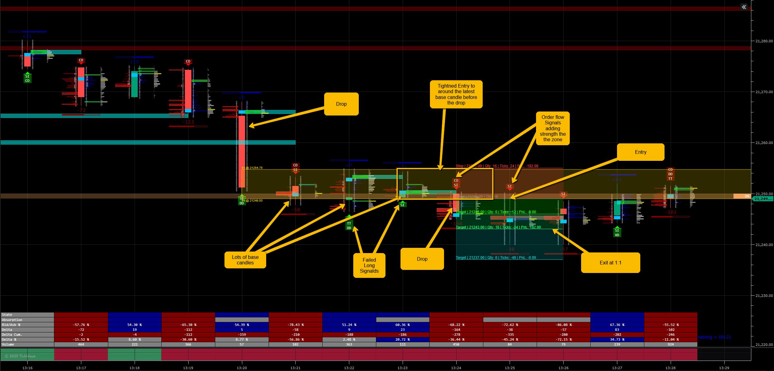 This trade is a great example of combining classic supply & demand structure with real-time order flow signals to tighten entries, validate zones, and manage risk precisely.